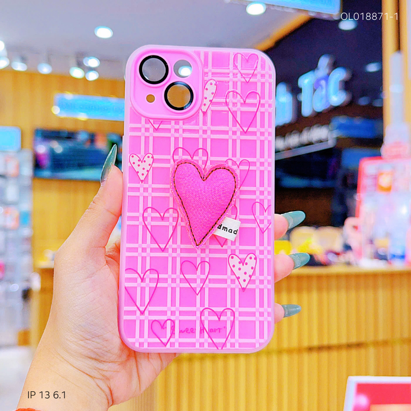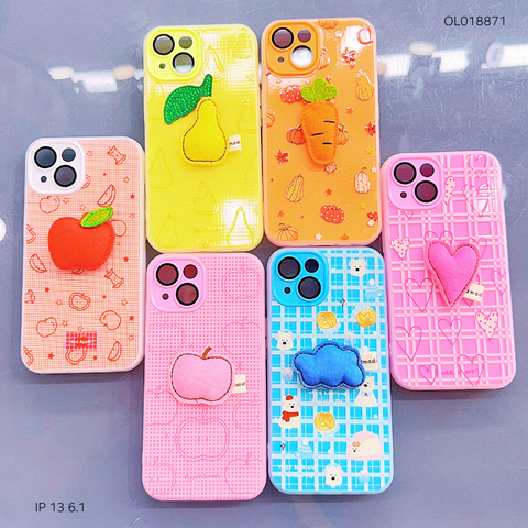 ** Ốp IP 15 6.1 vân sần đính charm thêu