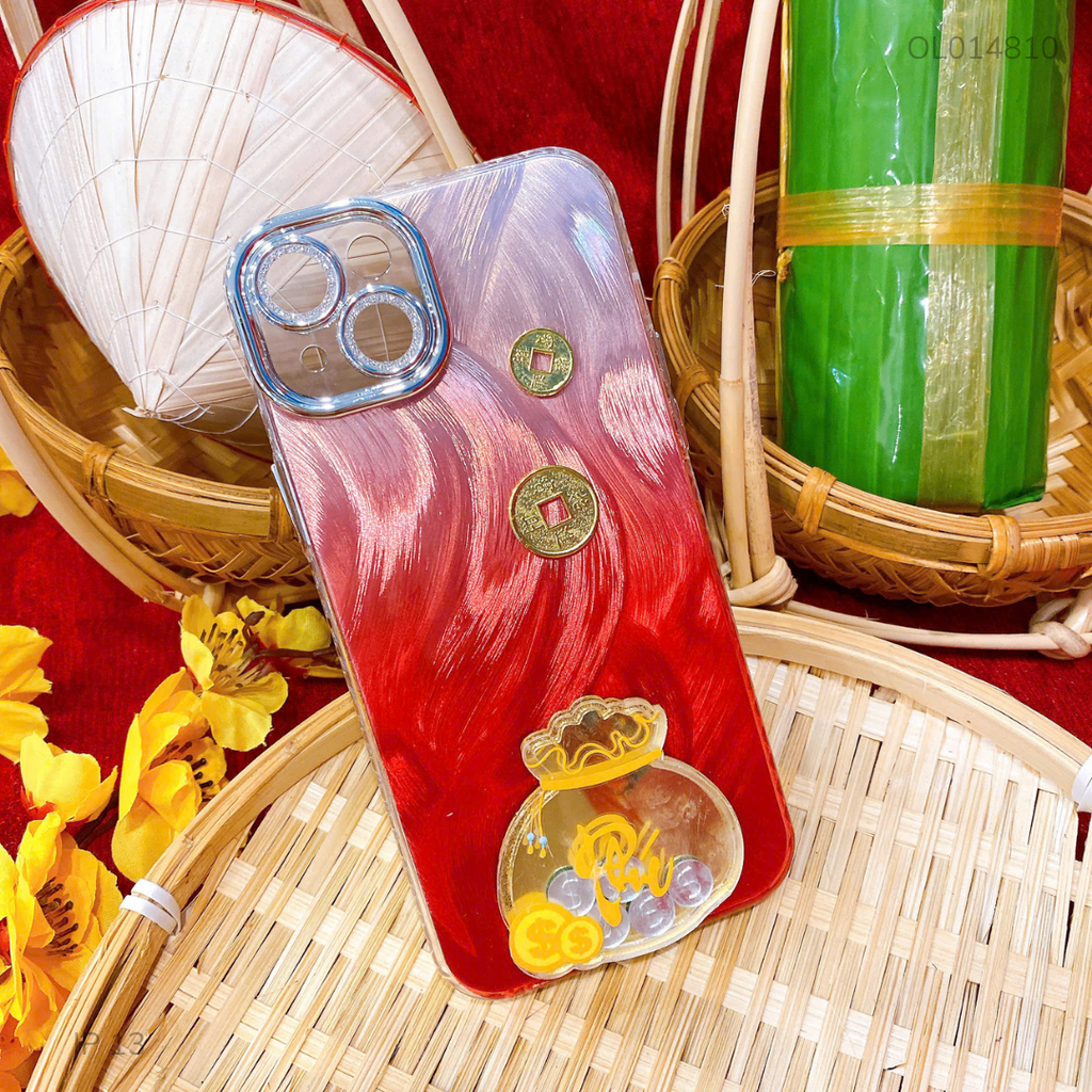 ** Ốp IP 13 6.1 lông vũ túi tiền đỏ