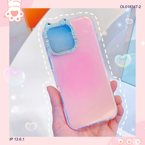 ** Ốp IP 13 6.1 viền camera Kitty đá nền trơn ánh kim