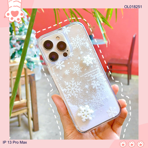 Ốp IP 13 Pro Max nhũ nước charm nổi bông tuyết trắng