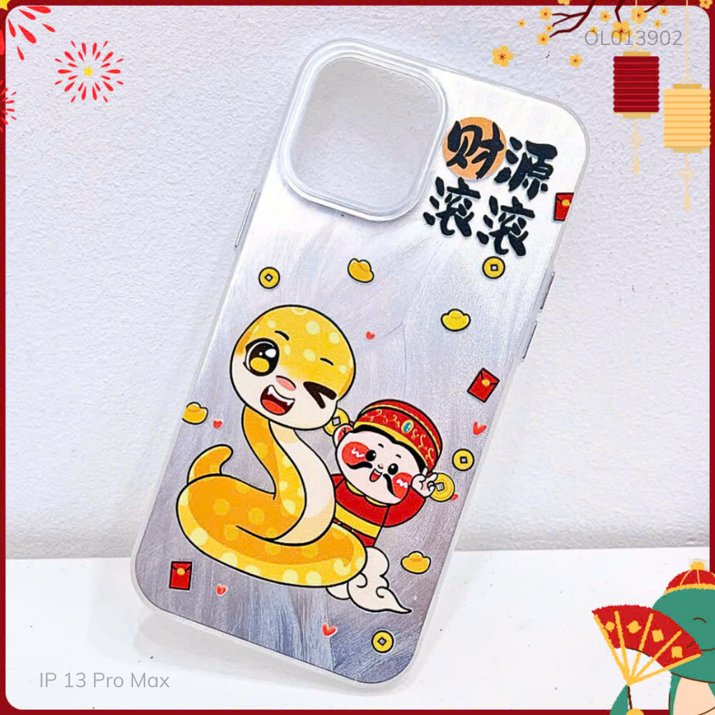 ** Ốp IP 13 Pro Max vân sóng bạc rắn vàng và thần tài