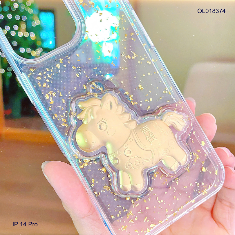 Ốp IP 14 Pro lưng trong nhũ vàng ngựa vàng