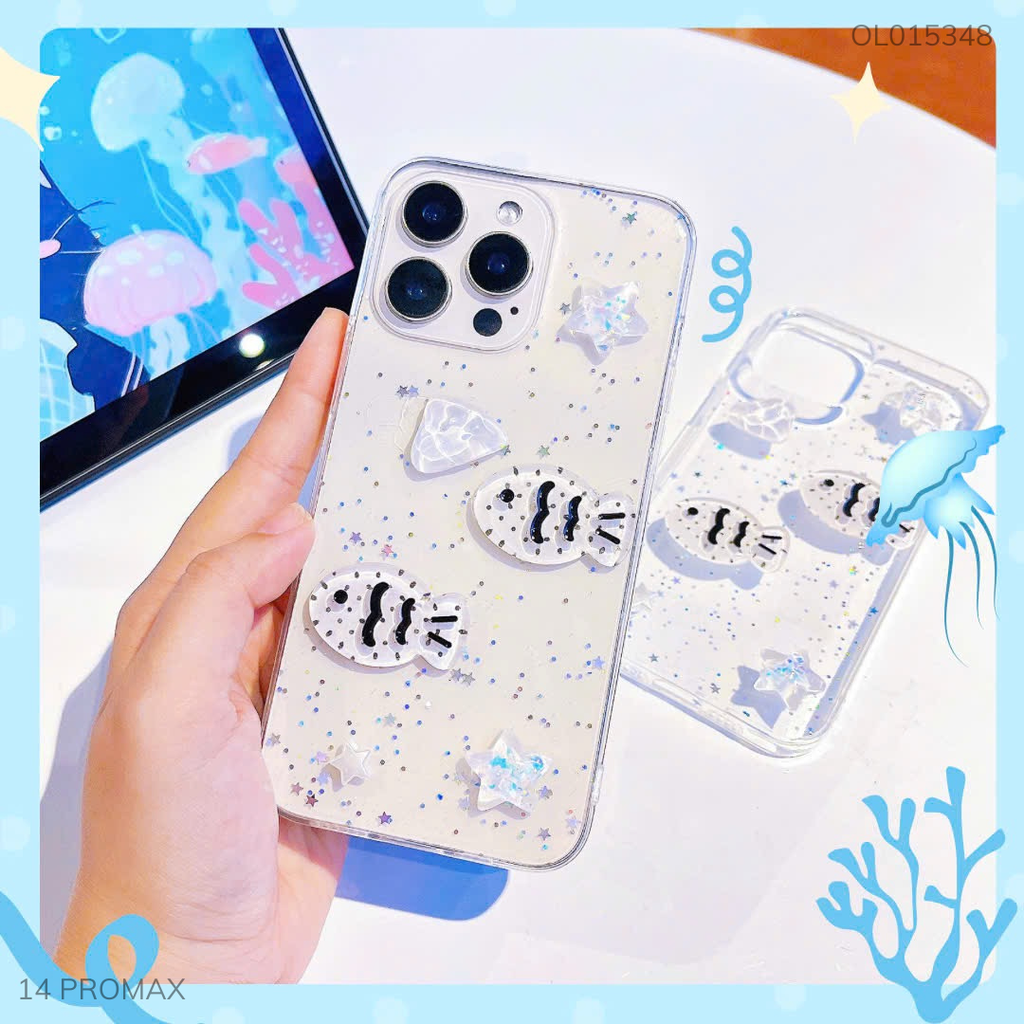 Ốp IP 14 Pro Max dẻo nhũ Cá Đen và Sao Trắng