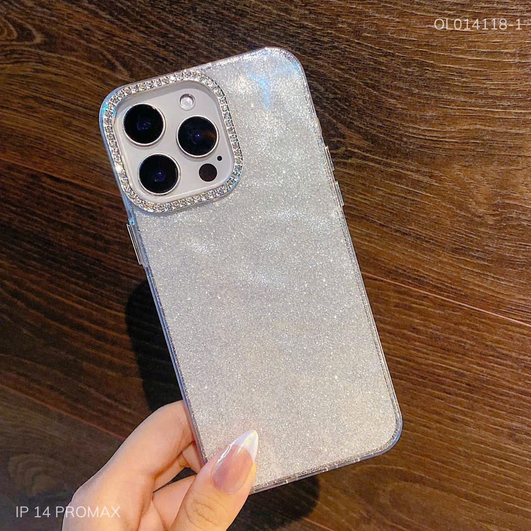 Ốp IP 14 Pro Max lưng cứng nhủ kim tuyến camera đính đá