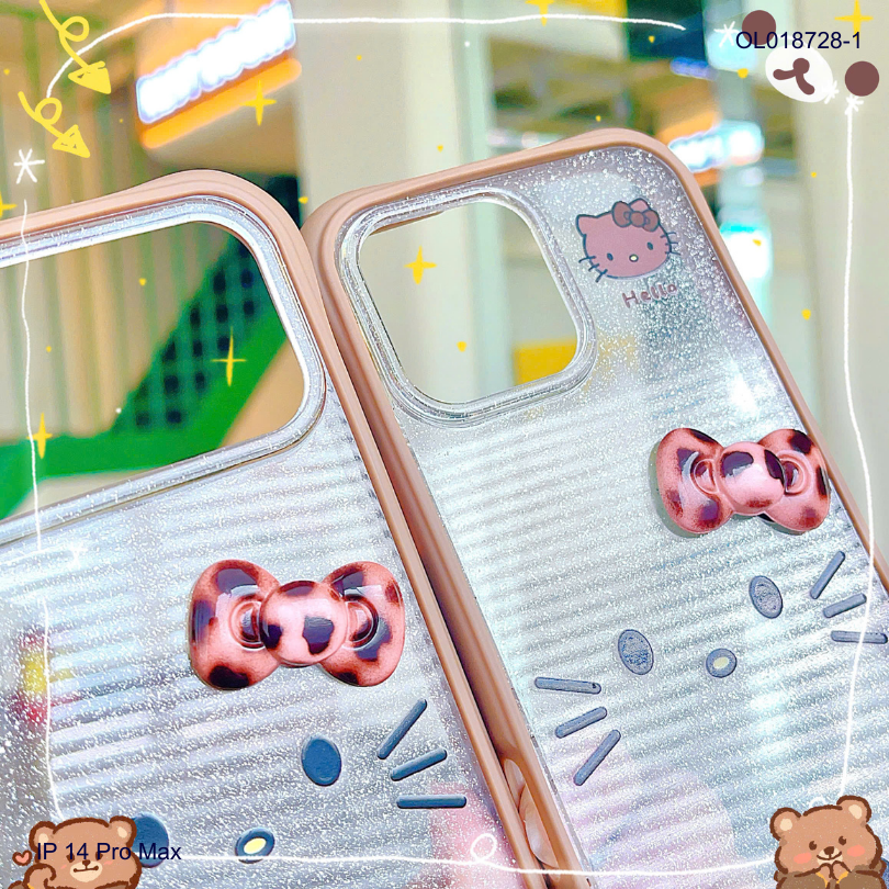 ** Ốp IP 14 Pro Max lưng trong cứng charm mặt Kitty đính đá