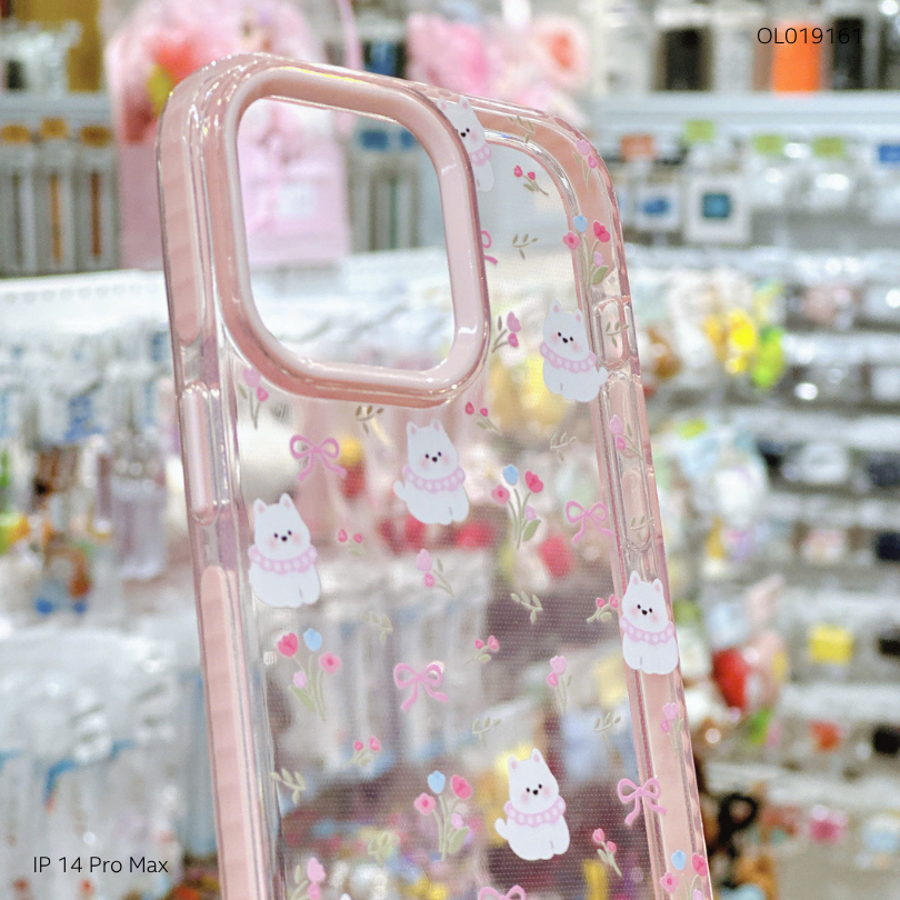 ** Ốp IP 14 Pro Max trong cún Puppy nơ hồng viền hồng