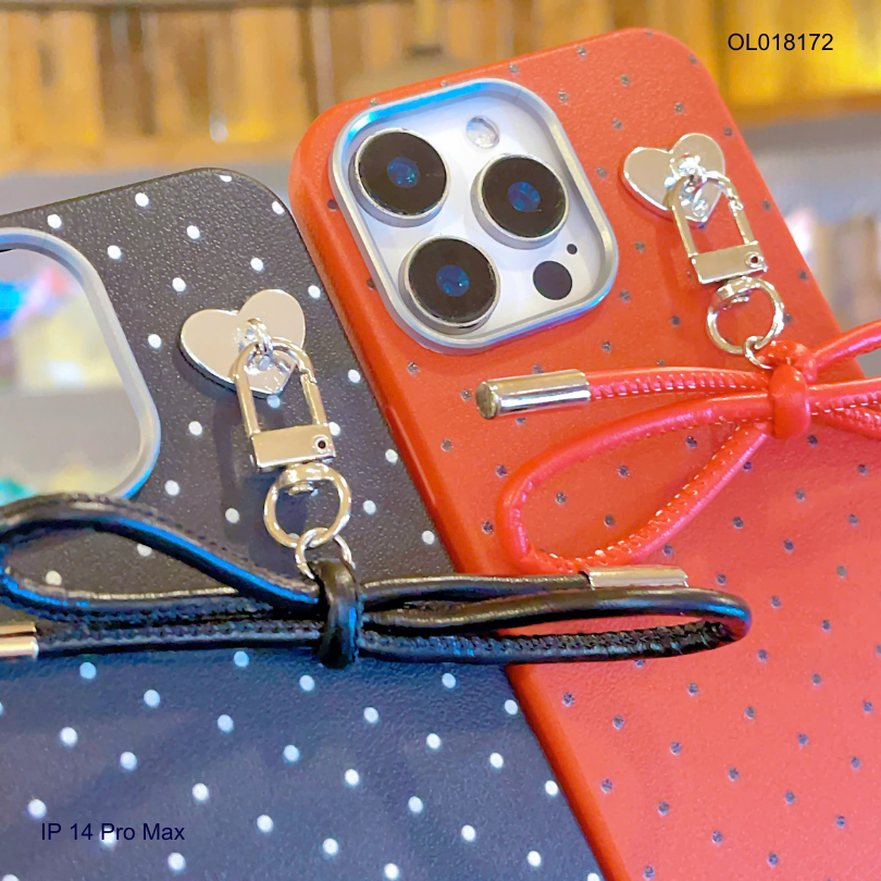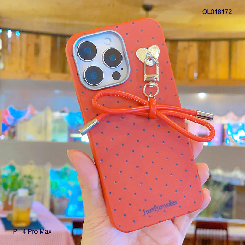 ỐP IP 14 Pro Max vân sần chấm bi charm nơ dây