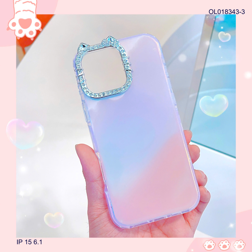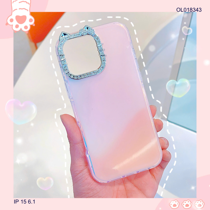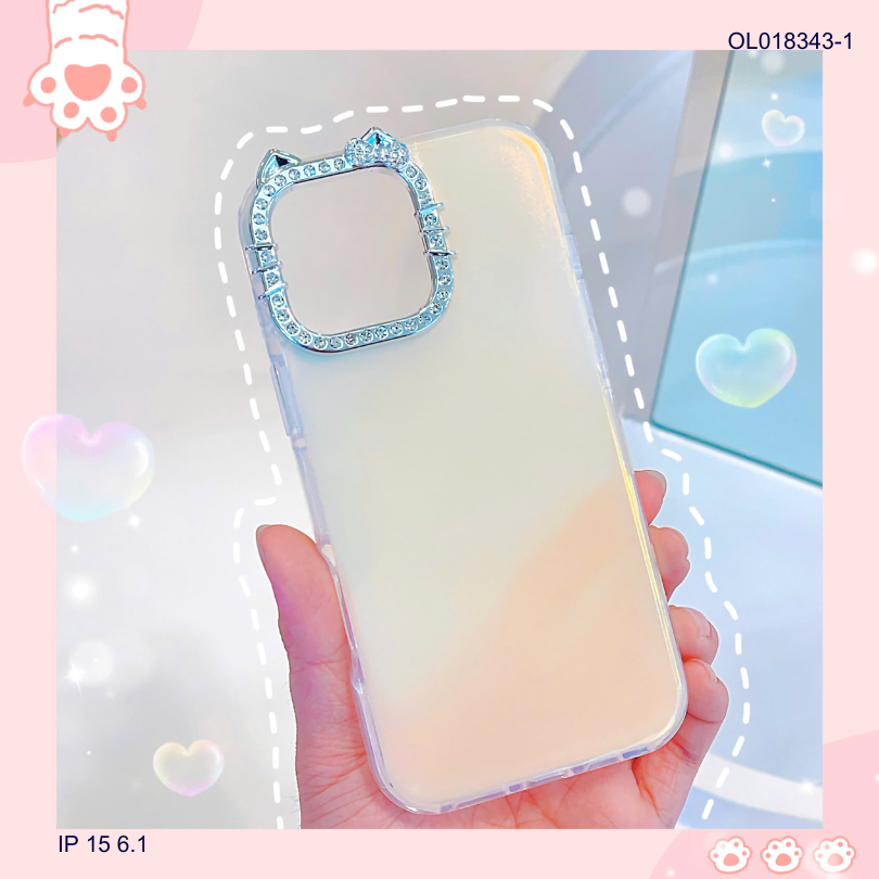 ** Ốp IP 15 6.1 viền camera Kitty đá nền trơn ánh kim