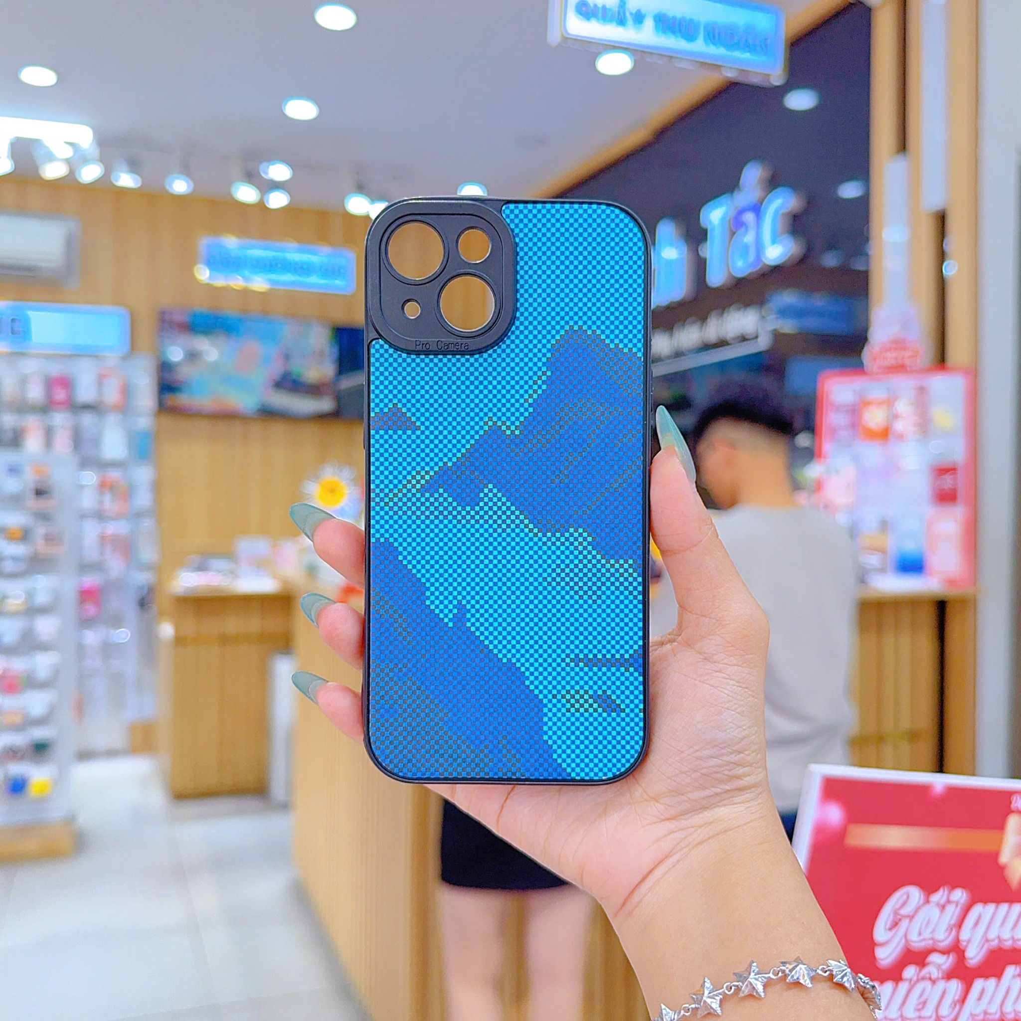 ** Ốp IP 15 Plus dẻo lưng giả da họa tiết Pixel