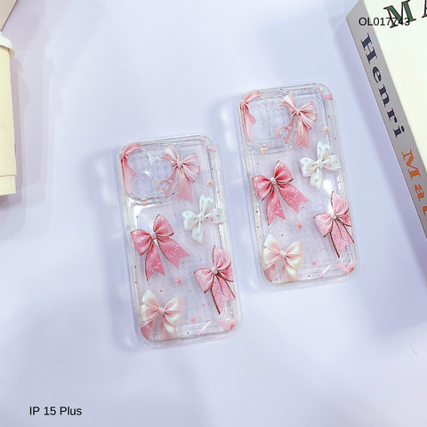 Ốp IP 15 Plus dẻo trong in nhiều nơ hồng lớn