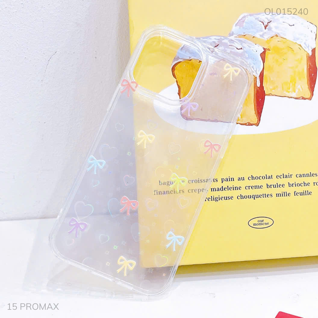 ** Ốp IP 15 Pro Max dẻo nhiều nơ màu đệm tim laze