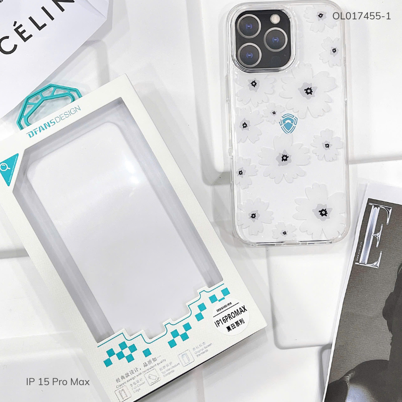 ** Ốp IP 15 Pro Max Dfans lưng hoa viền dẻo