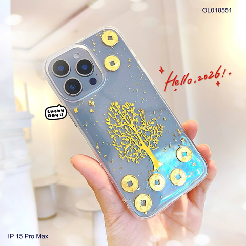 Ốp IP 15 Pro Max lưng trong cứng cây tiền vàng