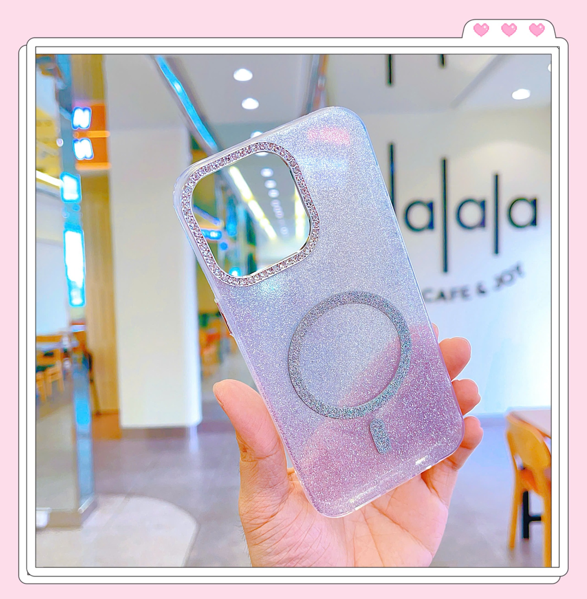 ** Ốp IP 15 Pro Max nhũ kim tuyến camera đính đá magsafe