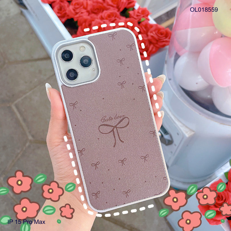 Ốp IP 15 Pro Max vân da viền dẻo xi bạc in nhiều hình
