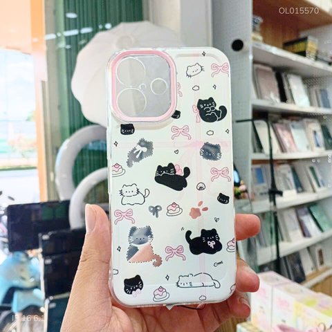 ** Ốp IP 16 6.1 dẻo in nhiều mèo nơ hồng bảo vệ Camera