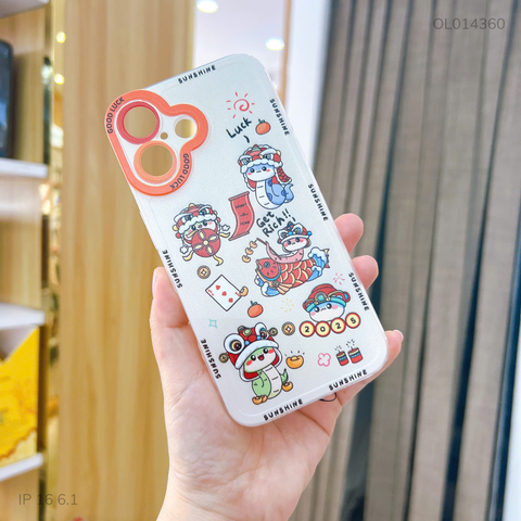 ** Ốp IP 16 6.1 dẻo rắn lân Get rich nền kem