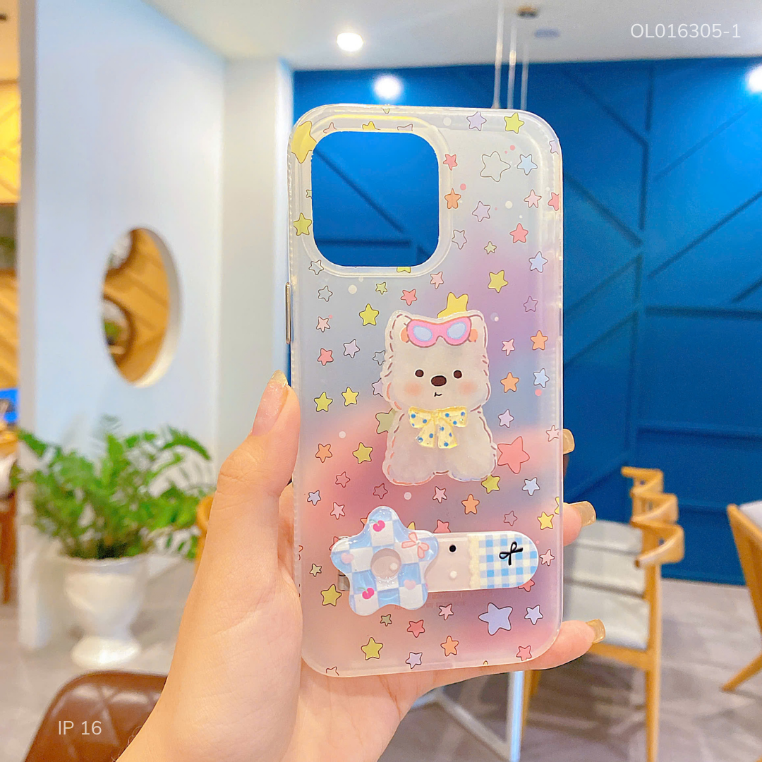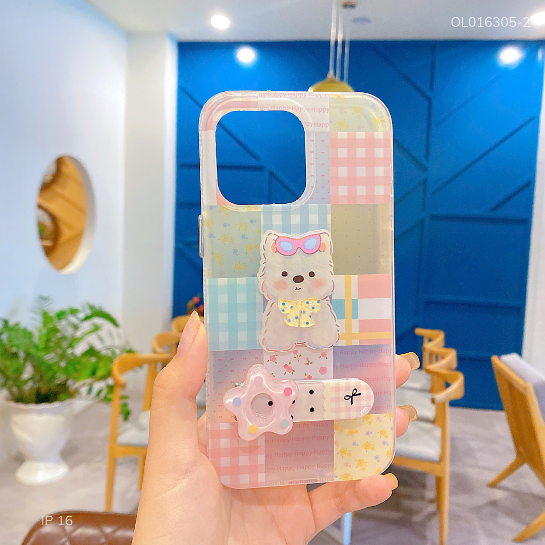 ** Ốp IP 16 6.1 nhám đính cún kẹp giá đỡ