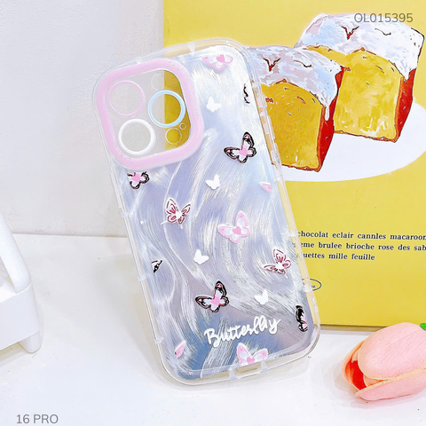** Ốp IP 16 Pro dẻo đệm vân ánh sóng nhiều bướm