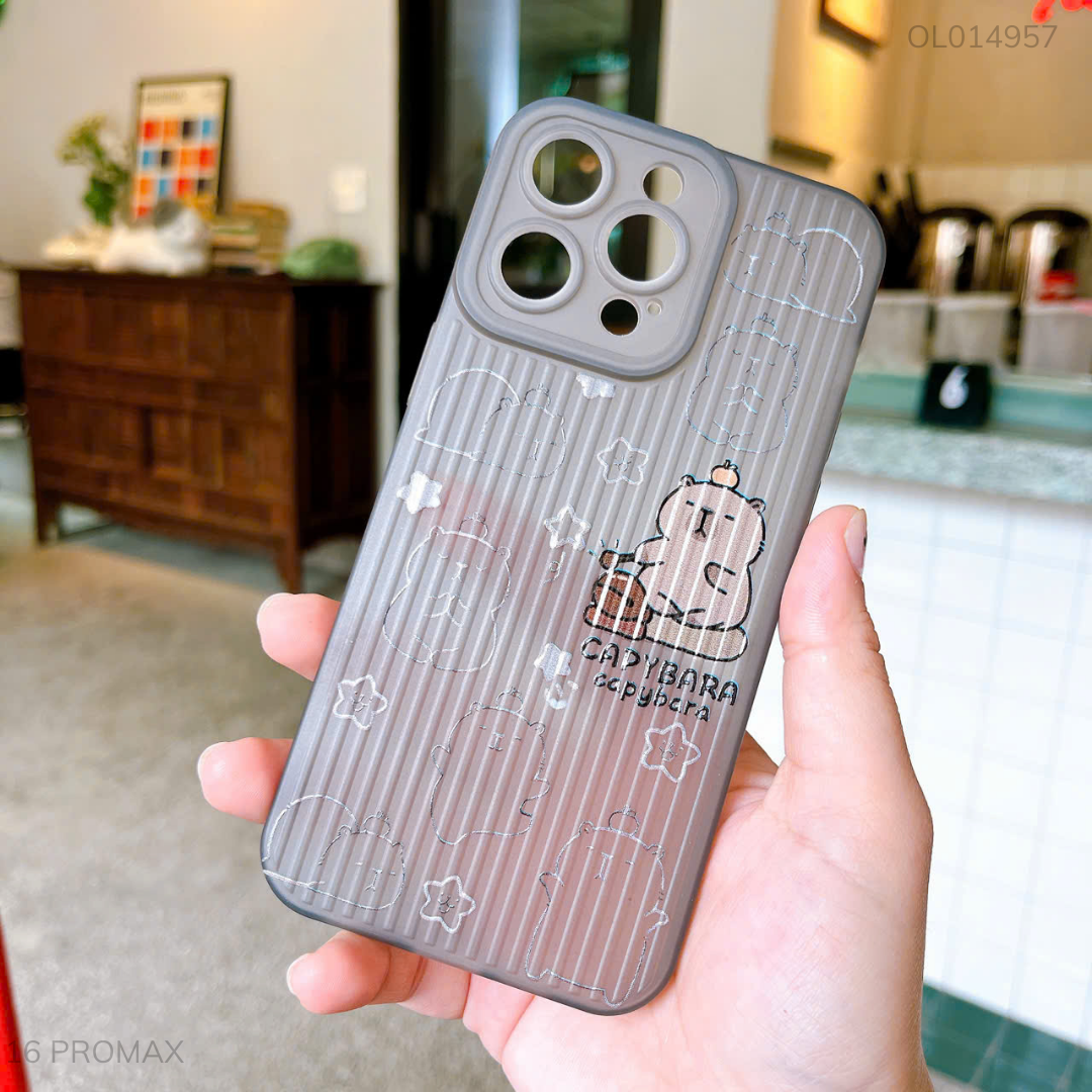** Ốp IP 16 Pro Max vân da viền dẻo xi bạc camera in hình