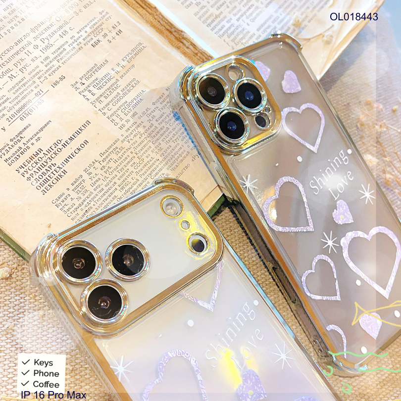 ** Ốp IP 16 Pro Max dẻo viền xi chống sốc in hình trái tim Shining Love