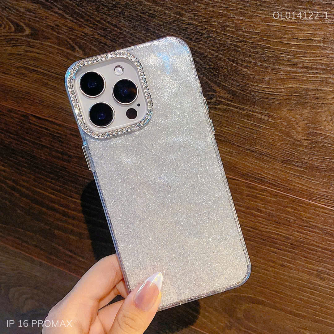 Ốp IP 16 Pro Max lưng cứng nhủ kim tuyến camera đính đá