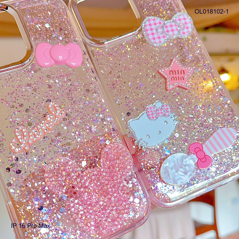 ** Ốp IP 16 Pro Max lưng nhũ nước kim tuyến kèm charm