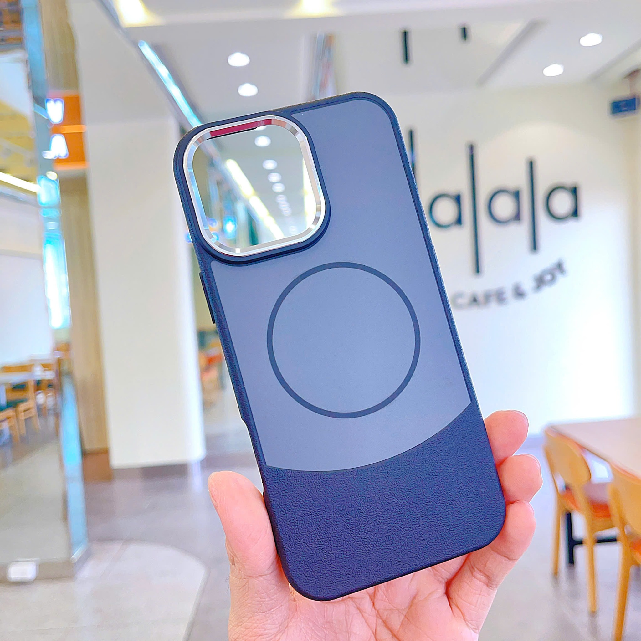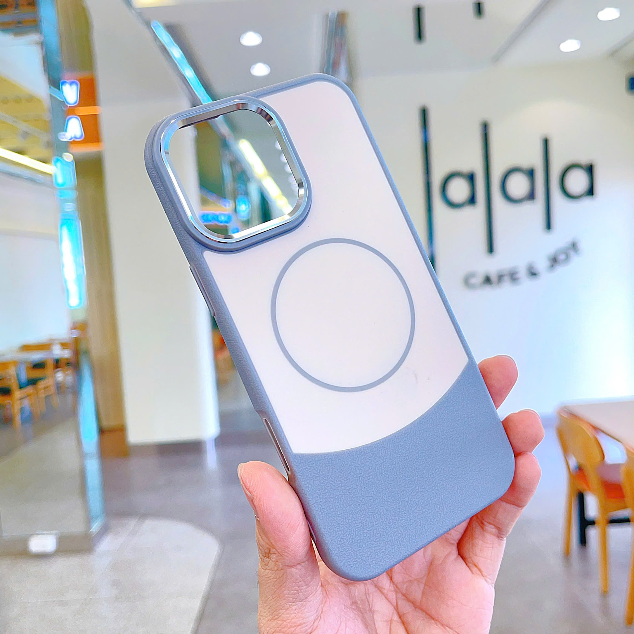 ** Ốp IP 16 Pro Max phối vân da viền camera bạc magsafe