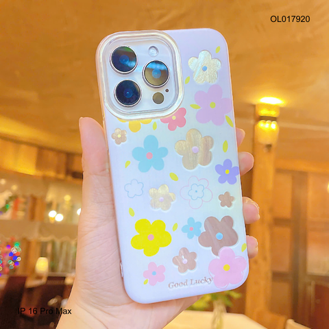 ** Ốp IP 16 Pro Max vân ánh sóng hoa 5 cánh nền hồng Good Lucky