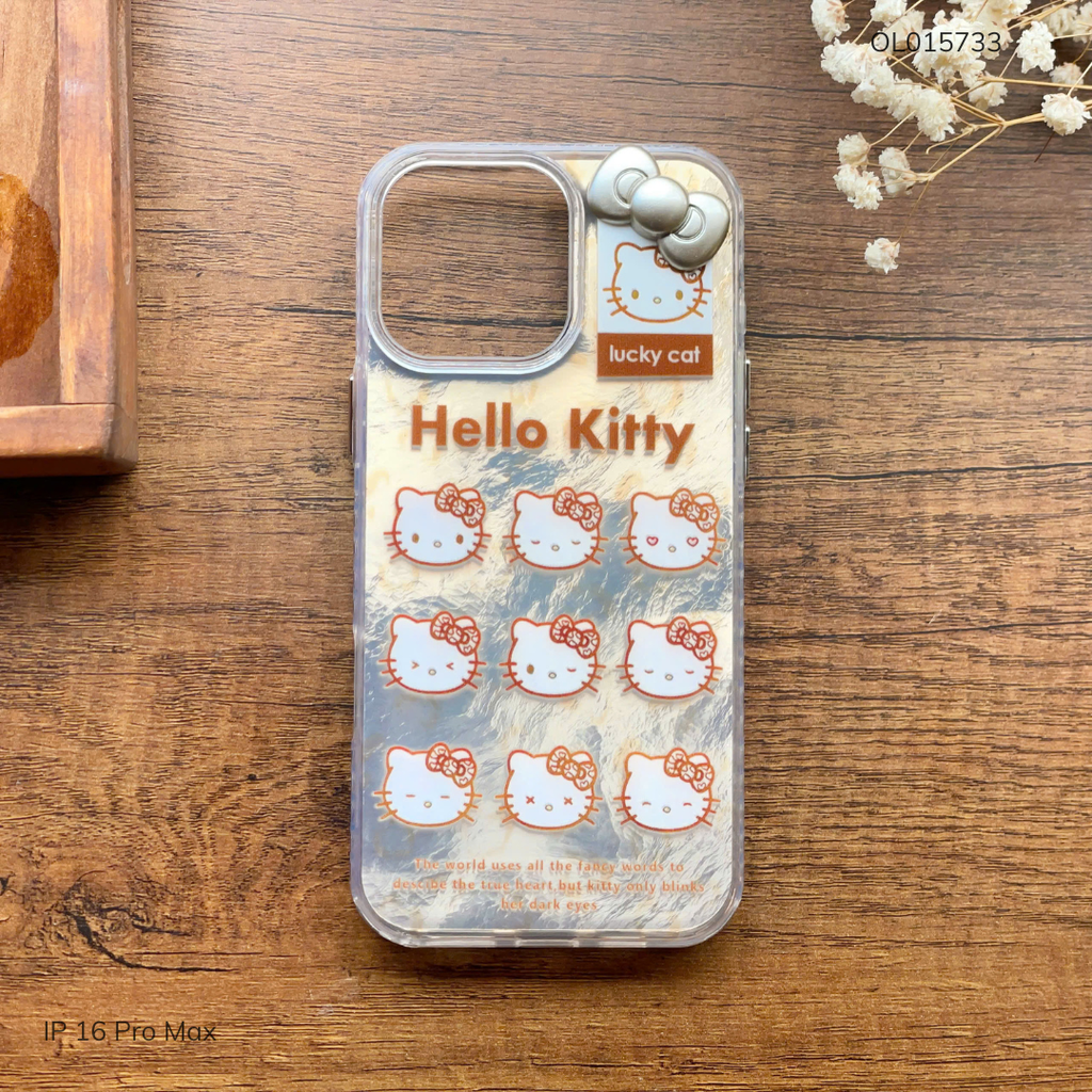 Ốp IP 16 Pro Max vân đá ánh kim 9 mặt kitty