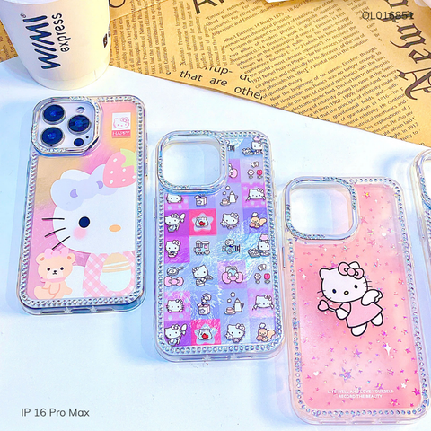 ** Ốp IP 16 Pro Max lưng thạch anh viền Kitty đính đá