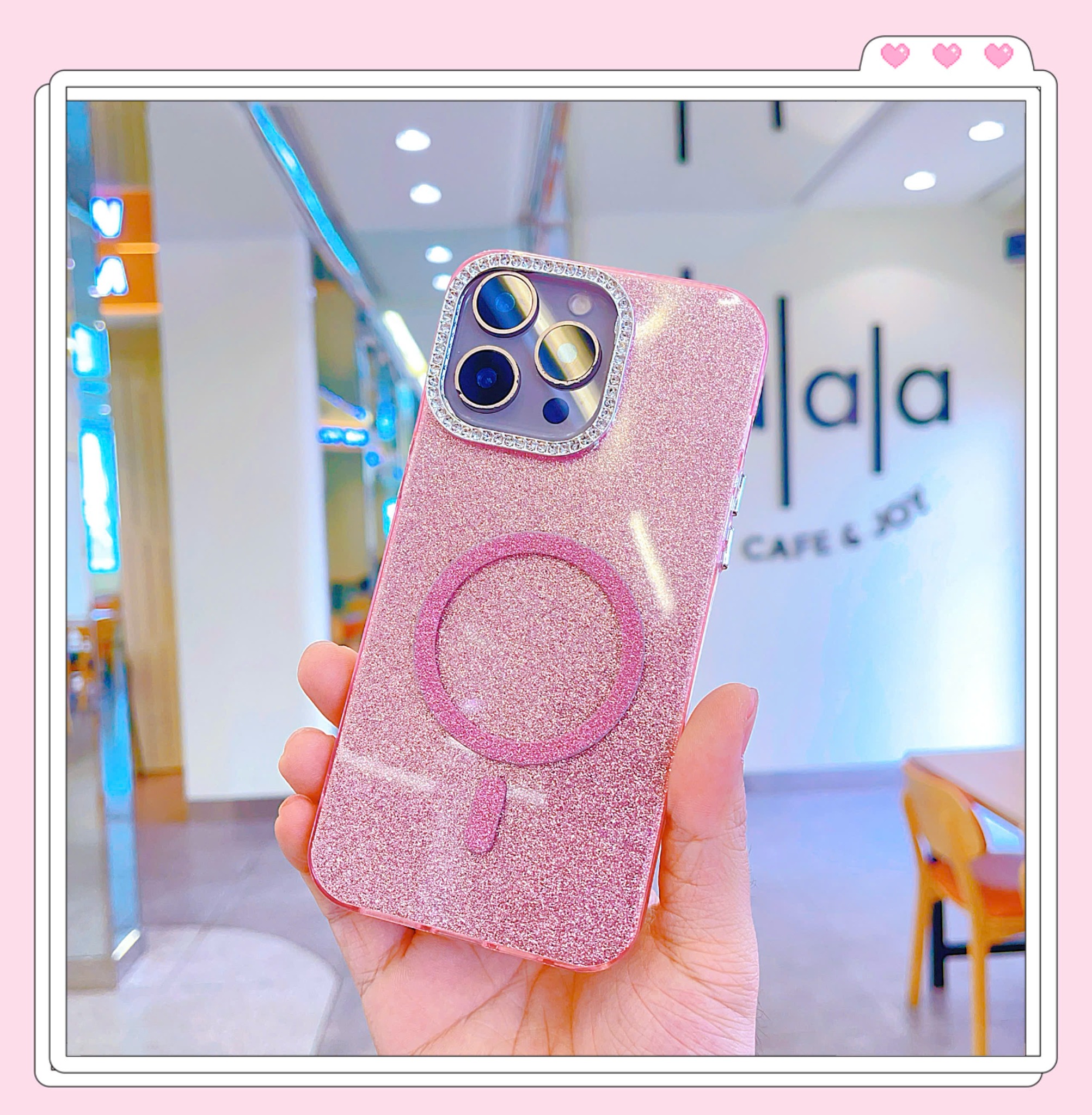 ** Ốp IP 16 Pro nhũ kim tuyến camera đính đá magsafe