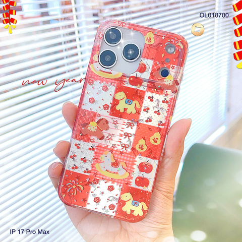 Ốp IP 17 Pro Max caro nền đỏ ngựa cute và cherry