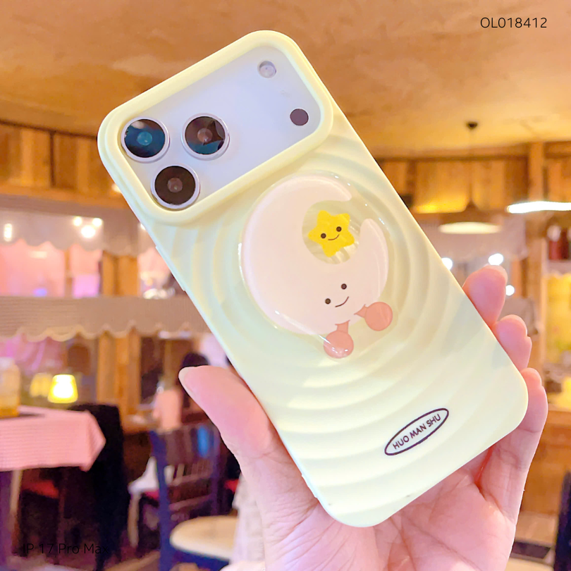 ** Ốp IP 17 Pro Max dẻo vân sóng nhiều hình kèm popsocket