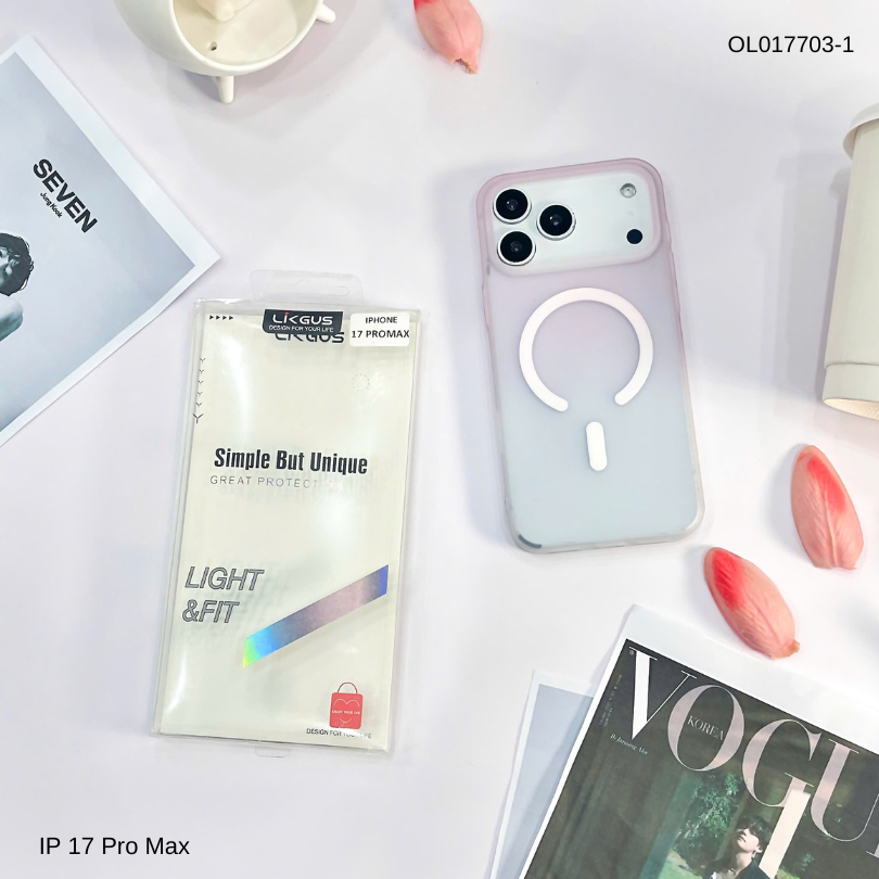 Ốp IP 17 Pro Max Likgus nhám magsafe loang màu viền cứng