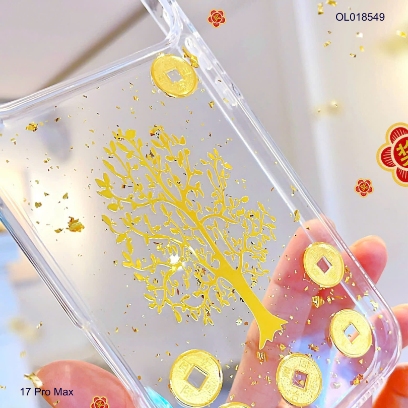Ốp IP 17 Pro Max lưng trong cứng cây tiền vàng