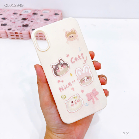 Ốp IP X giả da dẻo Cat Nice nền kem