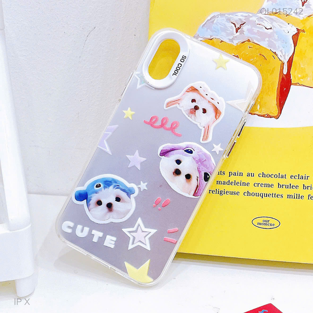 Ốp IP X tráng bạc in 3 cún đội nón Cute