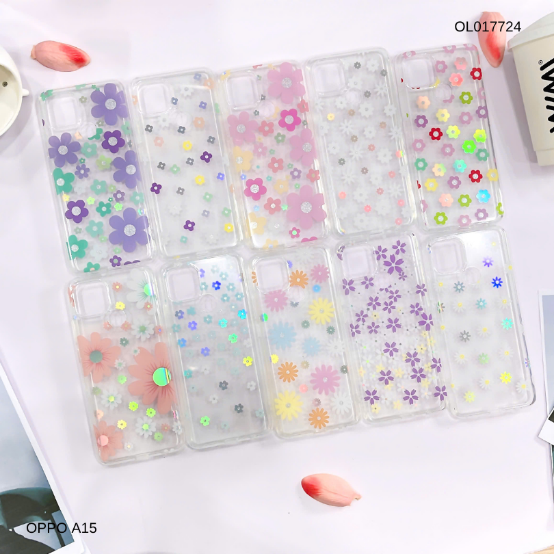 Ốp Oppo A15 lưng trong cứng nhiều hoa nhí nhiều màu