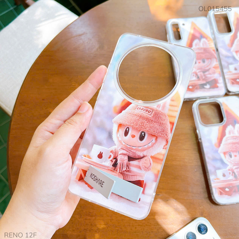 Ốp Reno 12F lưng cứng in Labubu giá đỡ