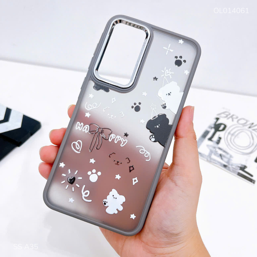 Ốp SS A35 lưng nhám gấu trắng và gấu đen nơ Happy