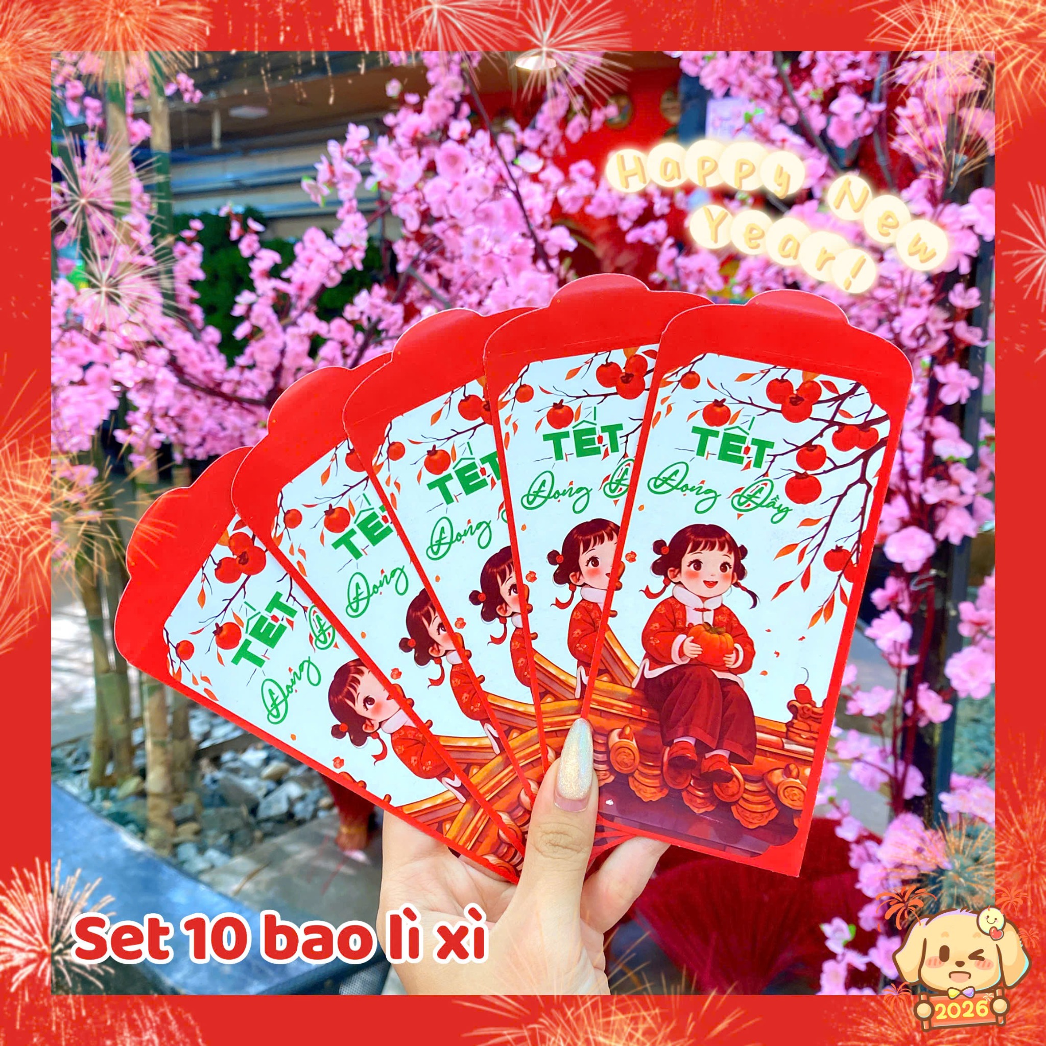 ** Set 10 bao lì xì mẫu mới hình bé gái